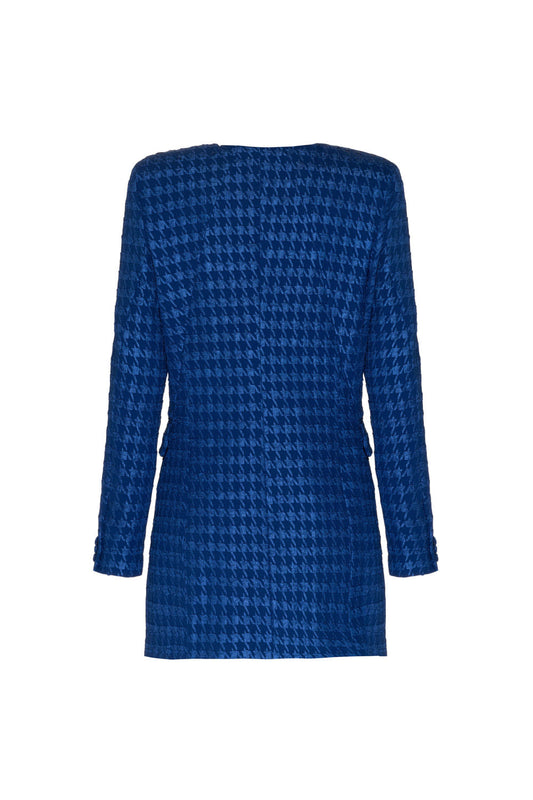 BLAZER RECORTES JACQUARD PIED DE POULE AZUL