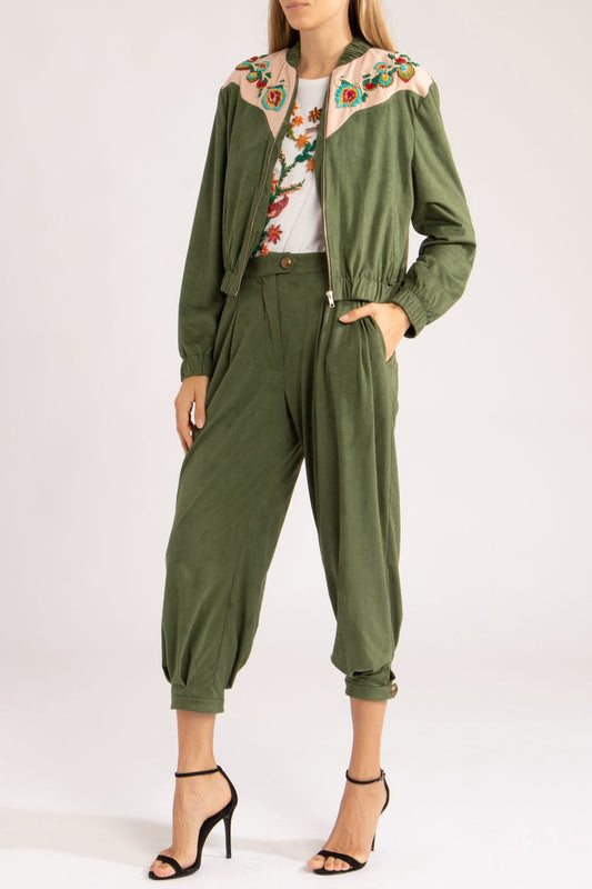 EsgotadoJAQUETA PALA BORDADA SUEDE VERDE