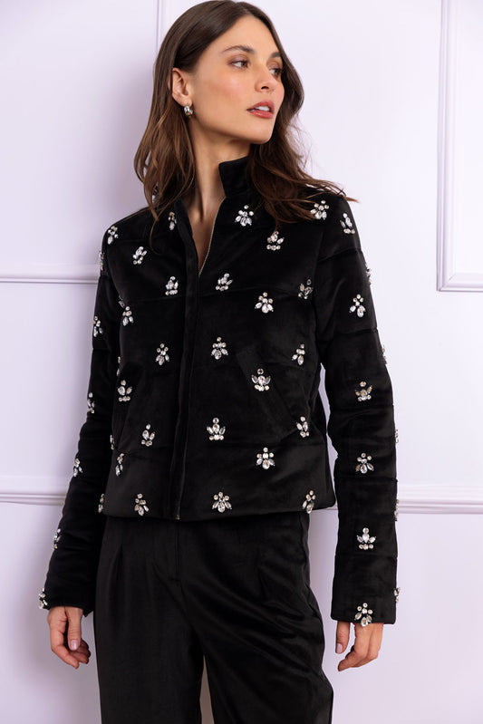 EsgotadoJAQUETA PALA BORDADA SUEDE PRETO