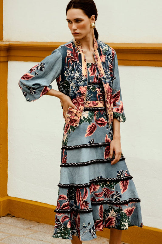 EsgotadoJAQUETA POMME FLOWER DENIM AZUL