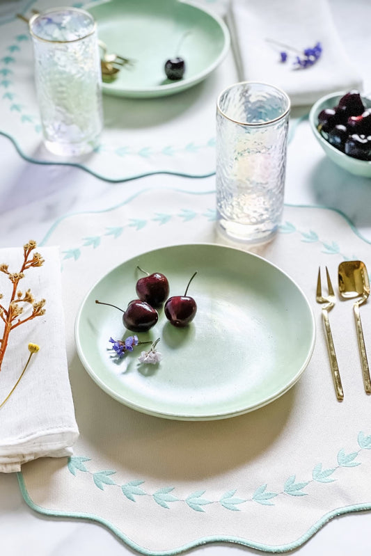 JOGO AMERICANO CASA LIS OFF WHITE COM VERDE