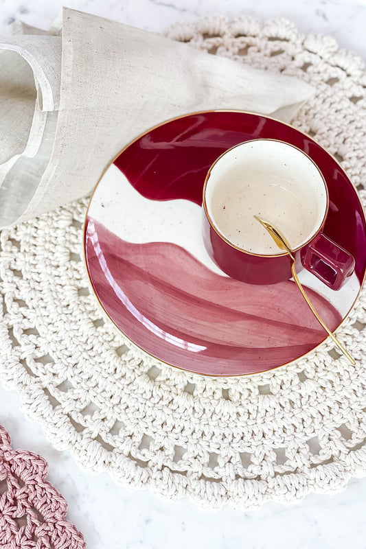 EsgotadoJOGO AMERICANO CROCHÊ REDONDO ROSA