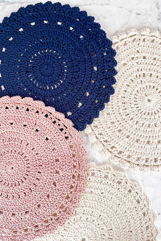 JOGO AMERICANO CROCHÊ REDONDO MARINHO