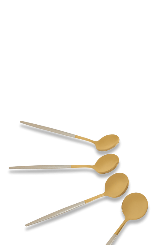 JOGO DE COLHERES PARA SOBREMESA SLIM PRATA E DOURADO