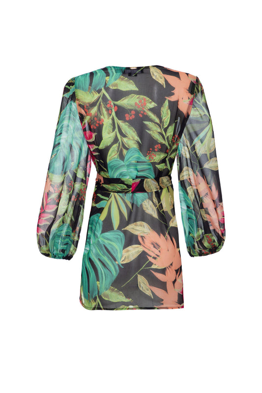 EsgotadoKIMONO CURTO TROPICÁLIA PRETO