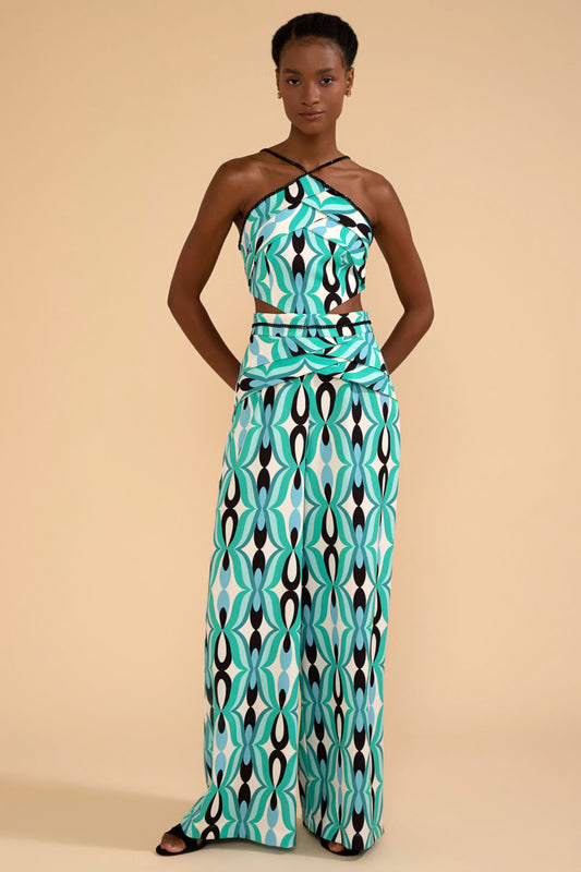 MAIÔ FIVELA ESTAMPADO MARINHA TROPICAL AZUL