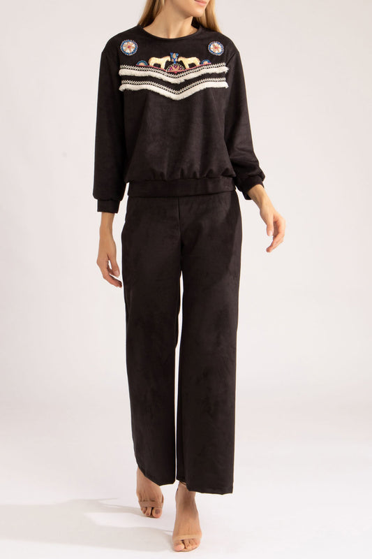 EsgotadoMOLETOM FRANJAS BORDADO PRETO