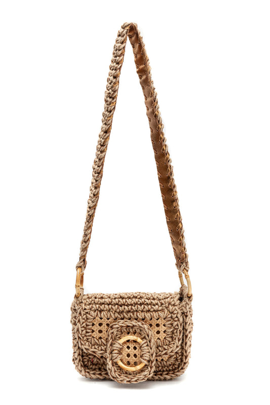 MINI BOLSA MAYA PALHA E COURO NATURAL