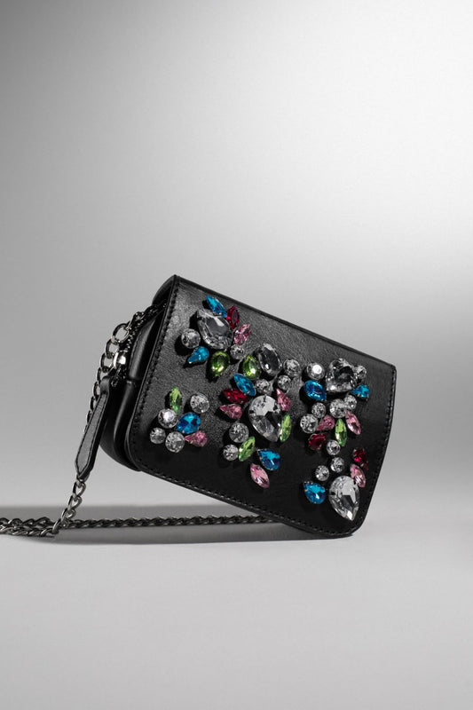 MINI BOLSA ELLE TORÇÃO CRISTAIS PRETO