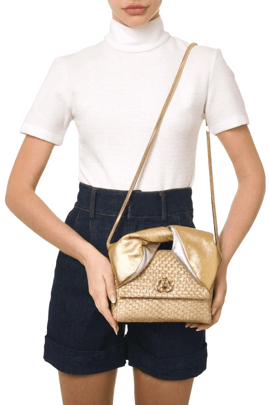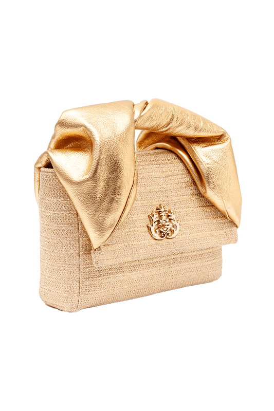 EsgotadoMINI BOLSA MAYA PALHA E COURO OURO