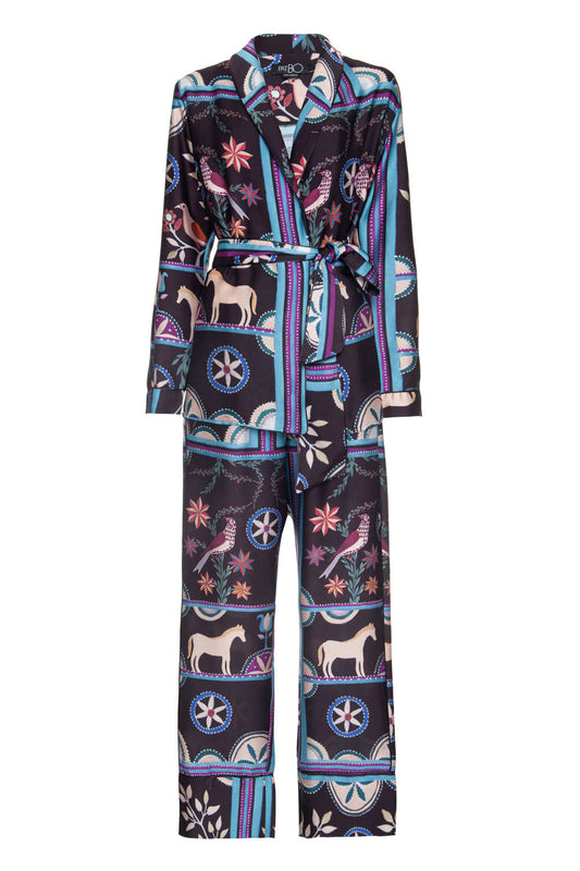 PIJAMA LONGO KIMONO CORDEL ÉTNICO PRETO