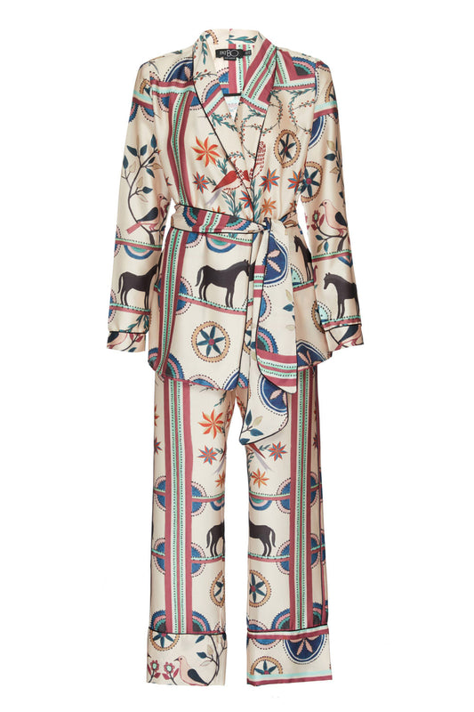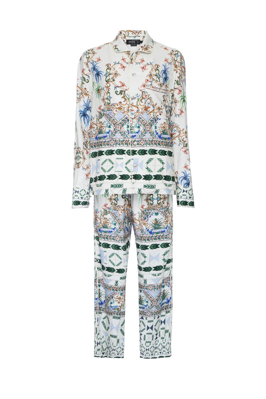 PIJAMA LONGO ÉTNICO TROPICAL KADU DANTAS OFF WHITE