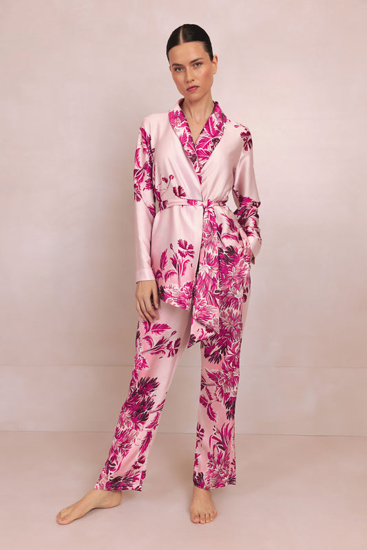 EsgotadoPIJAMA LONGO FLORAL MURAKAMI ROSA