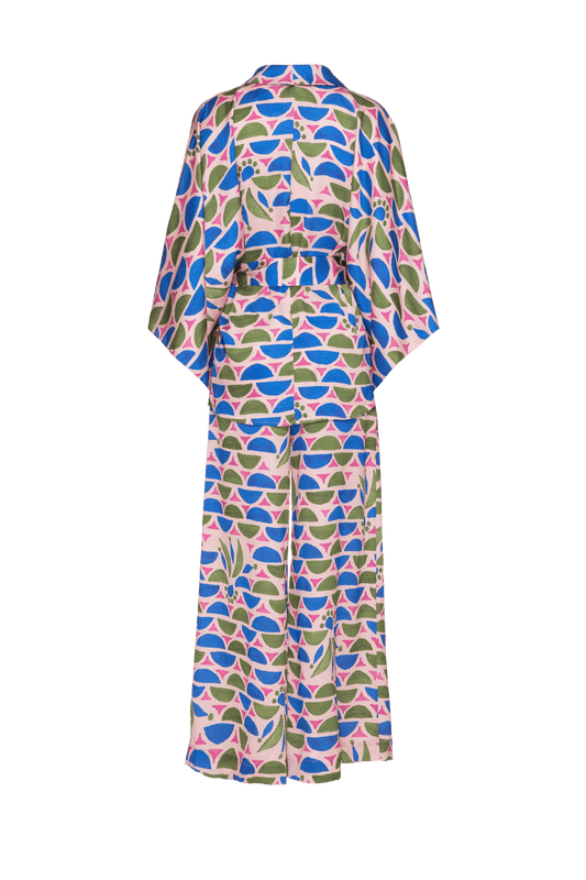 PIJAMA LONGO GEOMÉTRICO ZELLIJ KADU DANTAS VERDE COM PINK