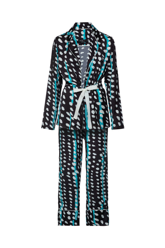 PIJAMA LONGO KIMONO DOTS STRIPES PRETO