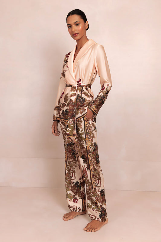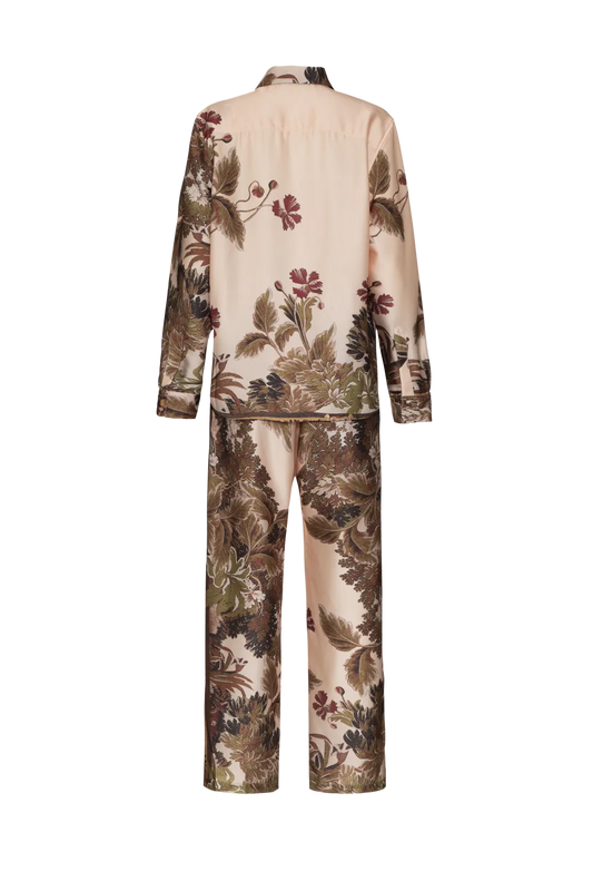 EsgotadoPIJAMA LONGO CETIM GILLY FLOWER BEGE