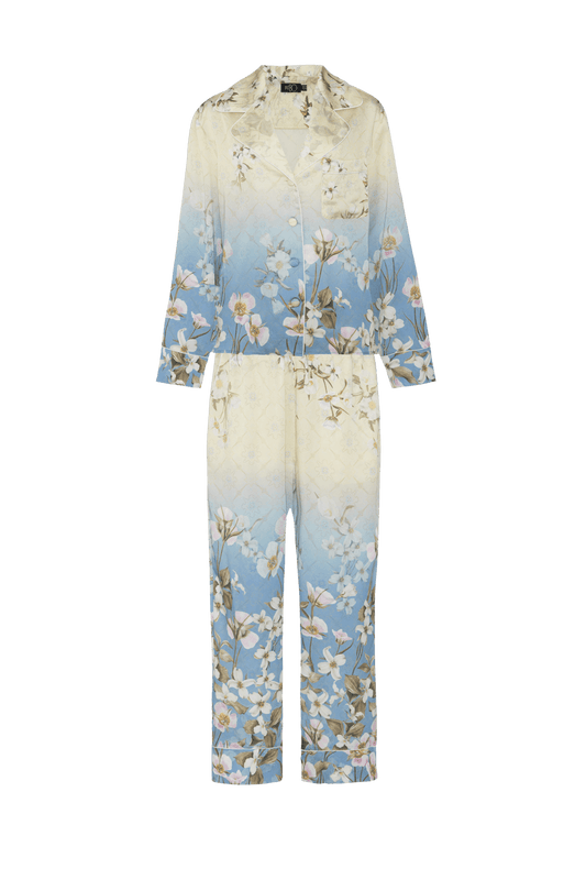 EsgotadoPIJAMA LONGO WHITE FLOWER AZUL