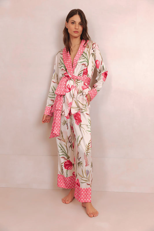 EsgotadoPIJAMA LONGO KIMONO MARI SAAD ROSA