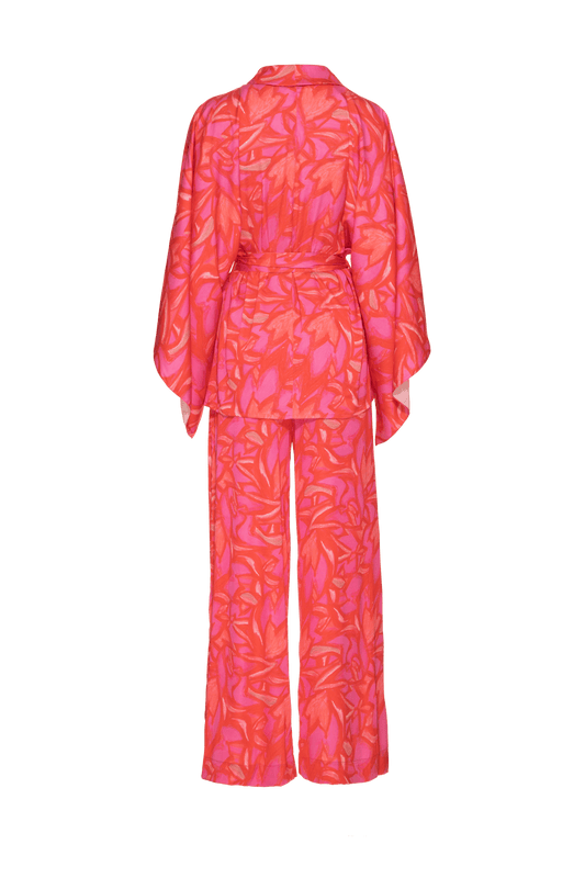 PIJAMA LONGO KIMONO GILLY FLOWER VERMELHO