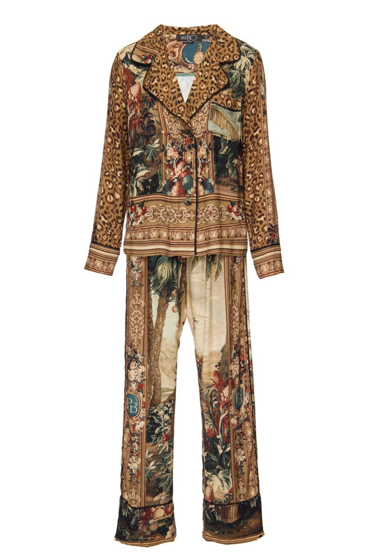 EsgotadoPIJAMA ONÇA ACETINADO LONGO MARROM