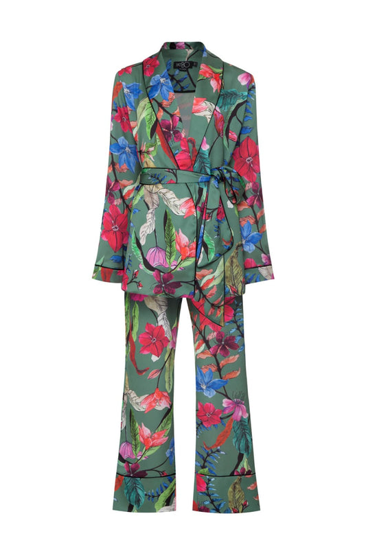 PIJAMA LONGO KIMONO ZAMIA LEAVES VERDE