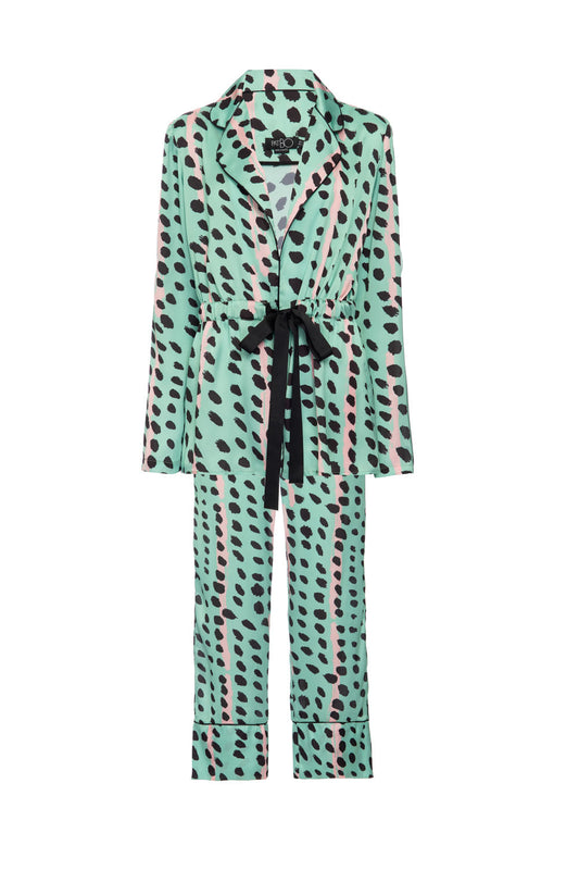 PIJAMA LONGO PLUMAS CETIM WAVES VERDE