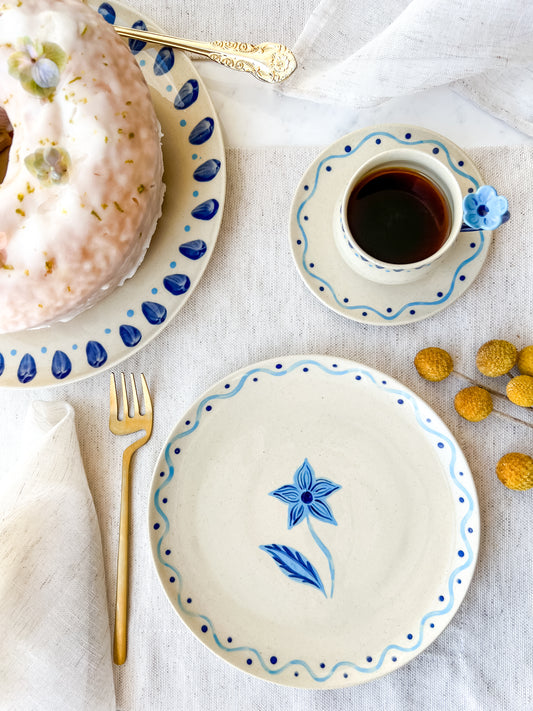 EsgotadoPRATO SOBREMESA BLUE DAISY NUDE