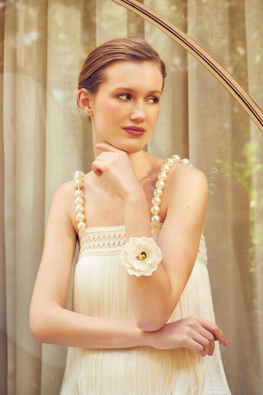 EsgotadoPULSEIRA FLOR CAMÉLIA BRANCO