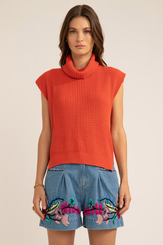 EsgotadoBLUSA GOLA ALTA TRICOT GYPSY LARANJA