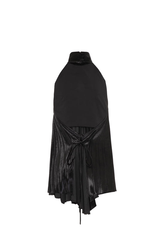 BLUSA FRENTE ÚNICA VELUDO PLISSADO PRETO