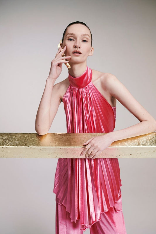 BLUSA FRENTE ÚNICA VELUDO PLISSADO ROSA