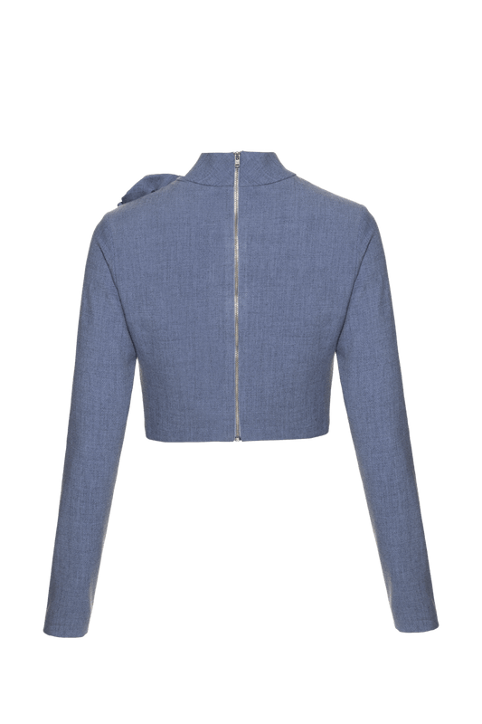 BLUSA FRENTE ÚNICA ASSIMÉTRICA CETIM MONALISA CELESTE