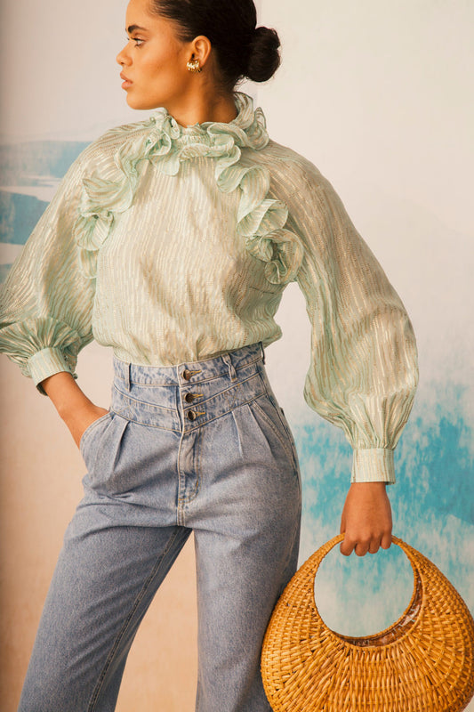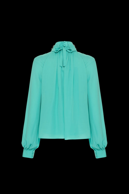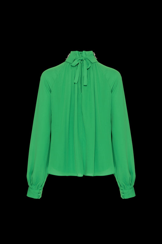 BLUSA GOLA ALTA PLISSADA CHIFFON TURNER VERDE