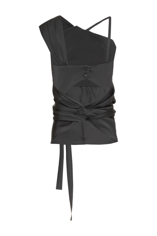 BLUSA FRENTE ÚNICA ASSIMÉTRICA CETIM MONALISA PRETO