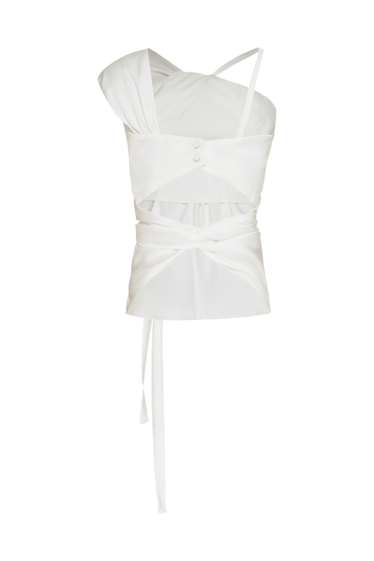 BLUSA FRENTE ÚNICA ASSIMÉTRICA CETIM MONALISA OFF WHITE