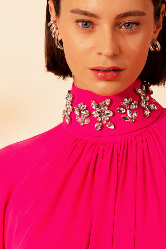 BLUSA GOLA REMOVÍVEL FRANZIDOS CREPE GRACE ROSA