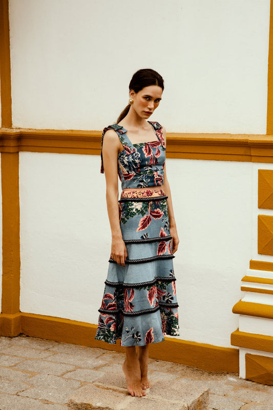 EsgotadoSAIA MÍDI FLORAL OLGA AZUL