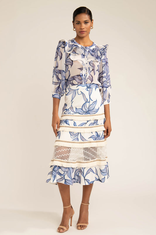 SAIA MIDI ENTREMEIOS GILLY FLOWER AZUL