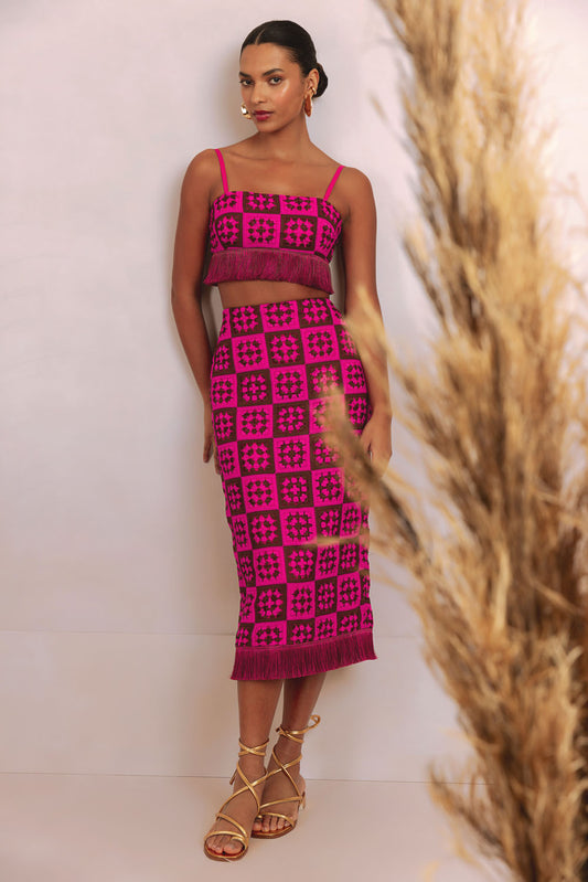 EsgotadoSAIA MÍDI MALHA MAX SQUARE ROSA