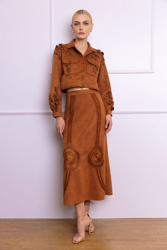 SAIA MÍDI MALHA ETHNIC BEGE