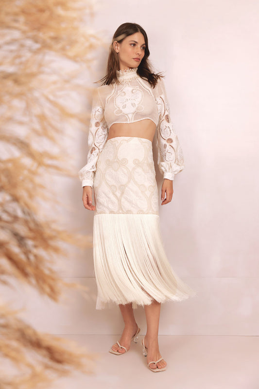 SAIA MÍDI PAETÊ CELESTIAL OFF WHITE