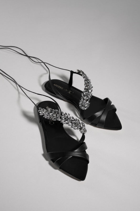 SANDÁLIA RASTEIRA COURO AMARRAÇÃO PRETO
