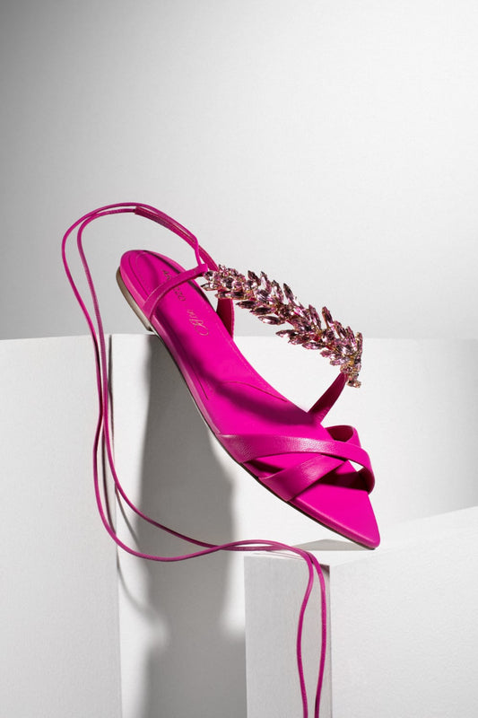 SANDÁLIA RASTEIRA COURO PEDRARIA PINK