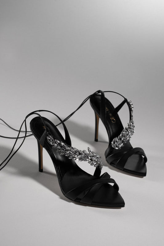 SANDÁLIA COURO SALTO FINO AMARRAÇÃO PRETO