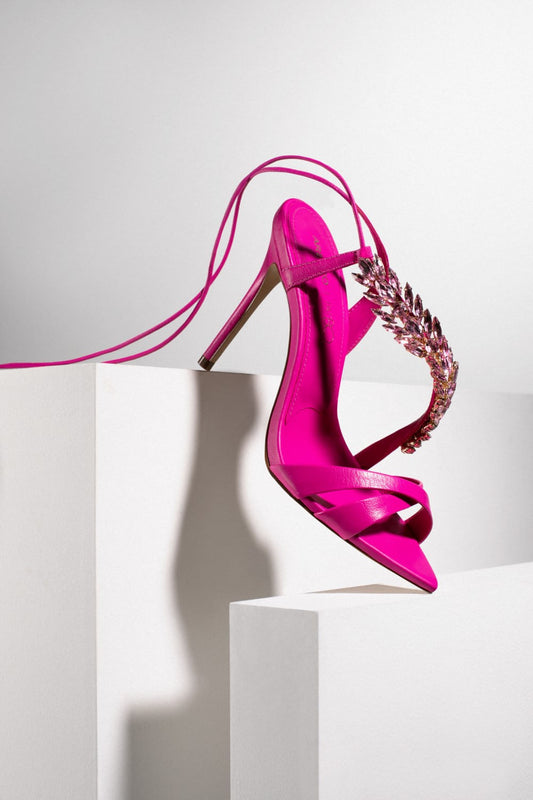 SANDÁLIA COURO SALTO FINO AMARRAÇÃO PINK