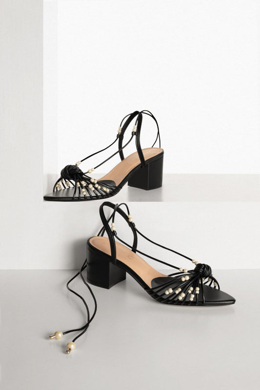 EsgotadoSANDÁLIA SALTO BLOCO PÉROLAS PRETO