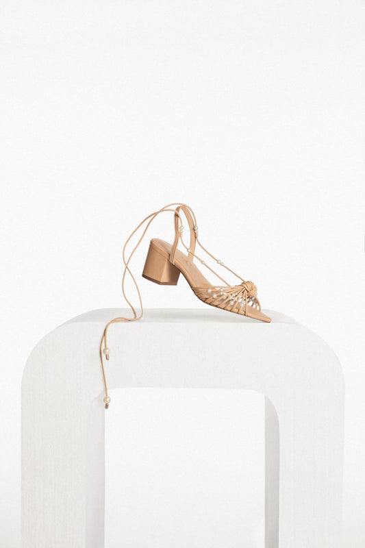 EsgotadoSANDÁLIA SALTO BLOCO PÉROLAS NUDE
