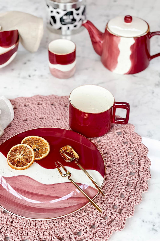 SET DE COLHERES PARA SOBREMESA BOTÂNICA ROSA COM DOURADO