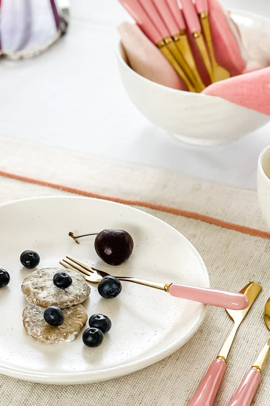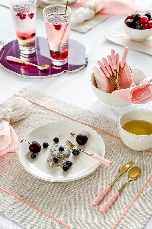 SET DE FACAS DE SOBREMESA BOTÂNICA ROSA COM DOURADO
