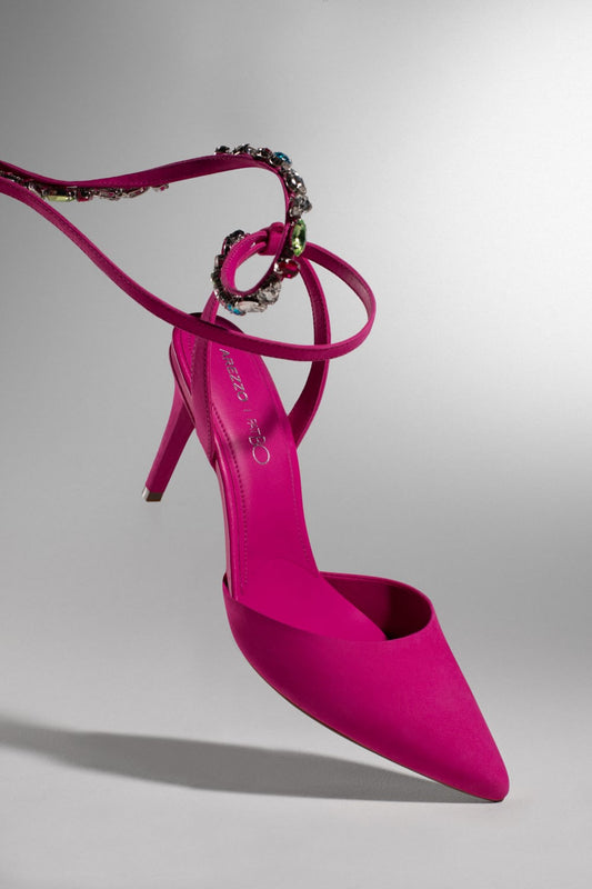 SCARPIN NOBUCK BICO FINO AMARRAÇÃO PINK